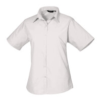 Easy care fabric. Fitted style with bust and back darts. Soft collar. Light blue and white have pearlised buttons - rest have self colour. Double folded seams. Curved hem. Available in 3/4 sleeves, PR305 and long sleeve PR300.
